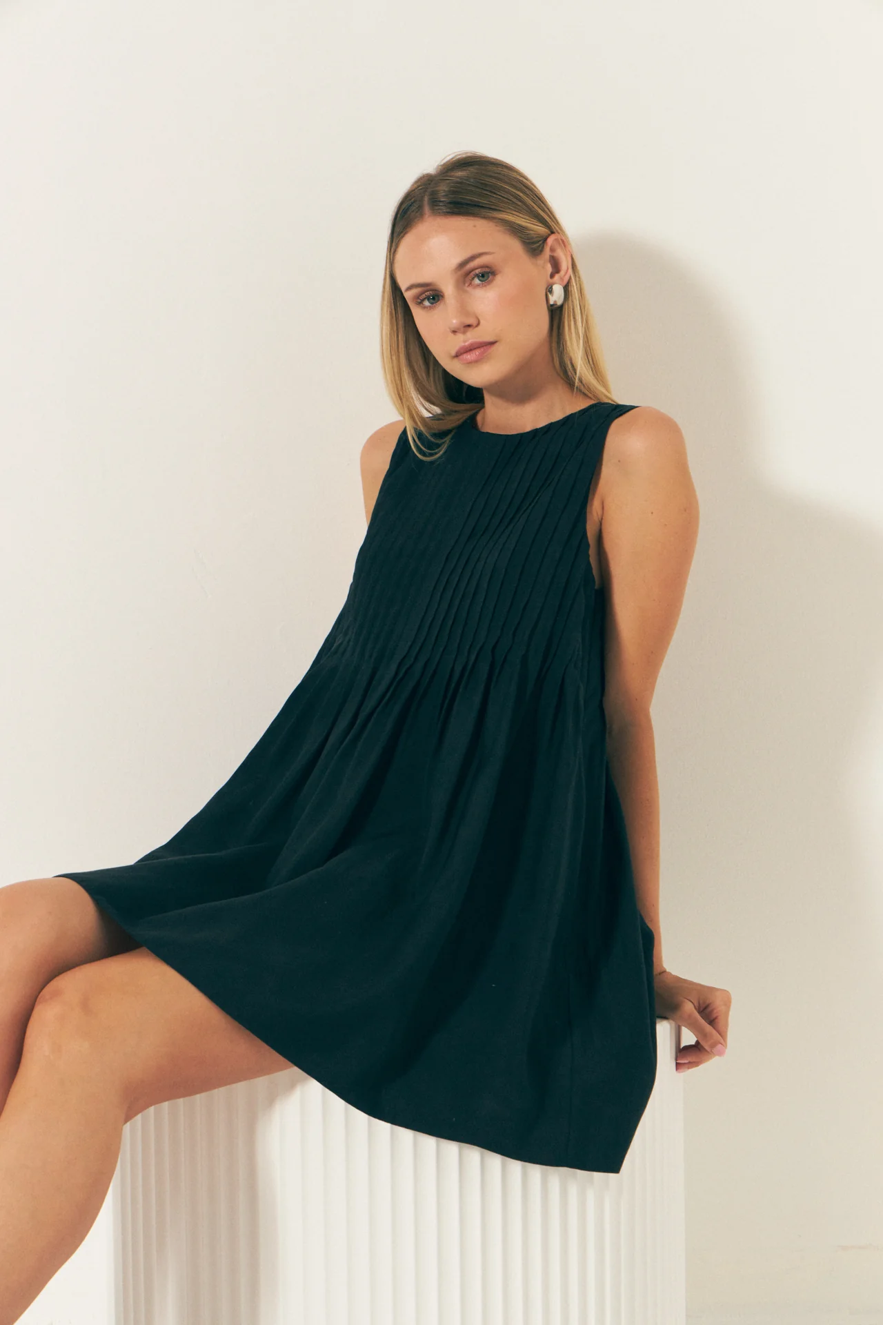 Pintuck Voluminous Mini Dress