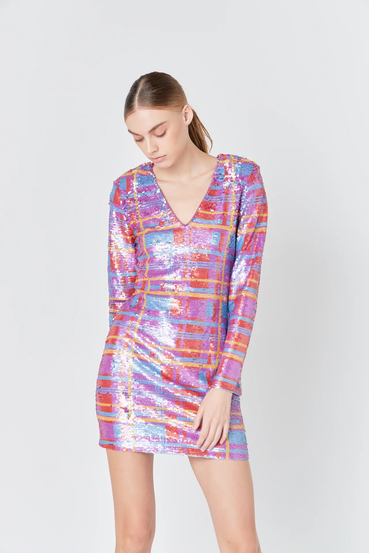 Check Pattern Sequins Dress