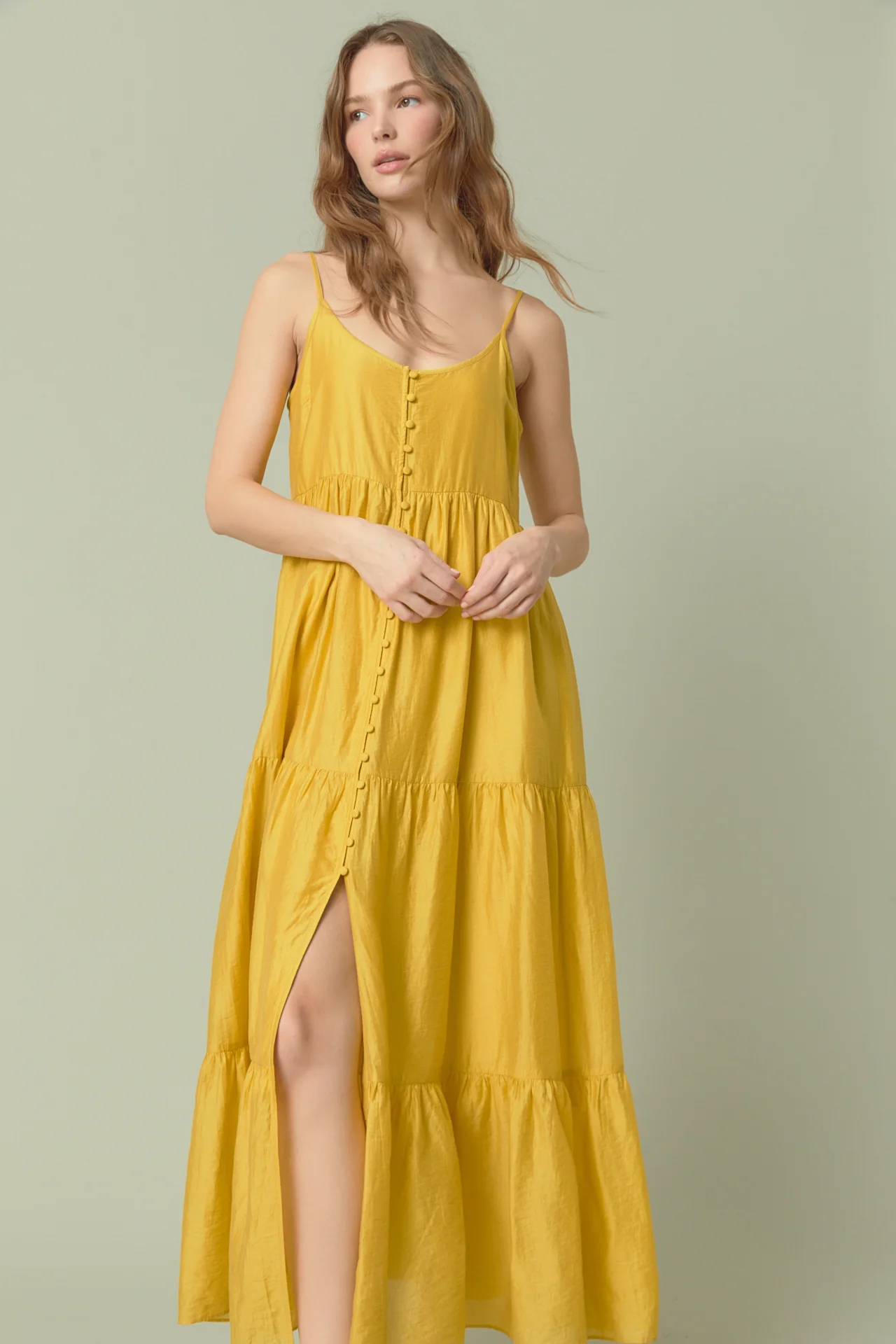 Button Detail Tiered Maxi Dress