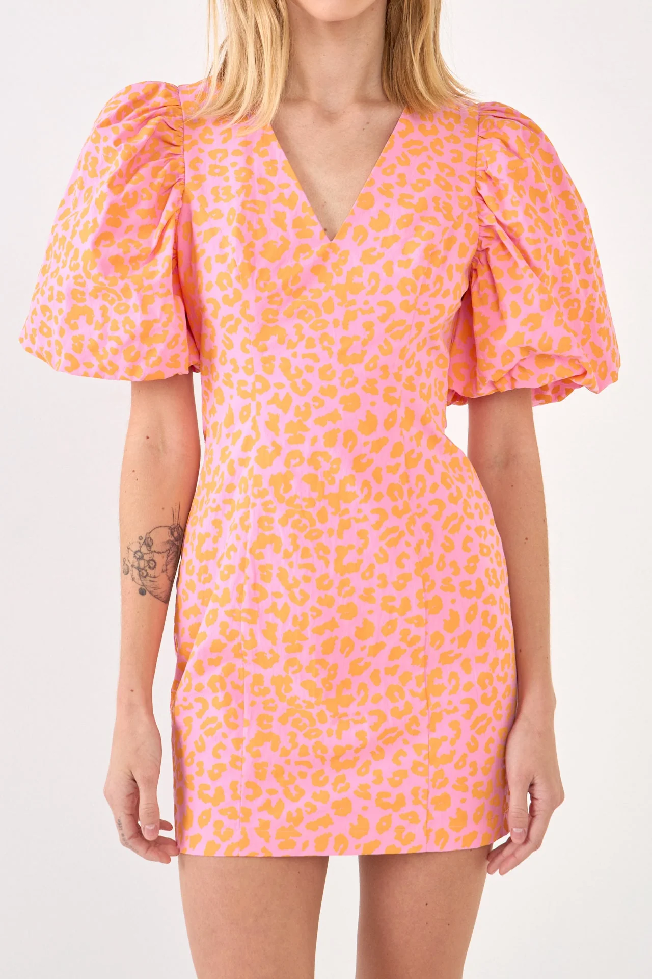 Leopard Printed Mini Dress with Puff Sleeves