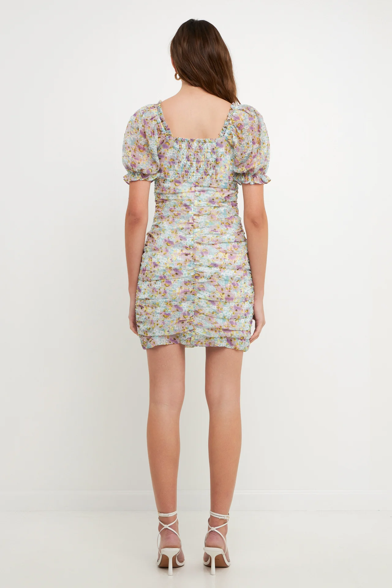 Puff Sleeve Mini Dress with Sweetheart Neckline