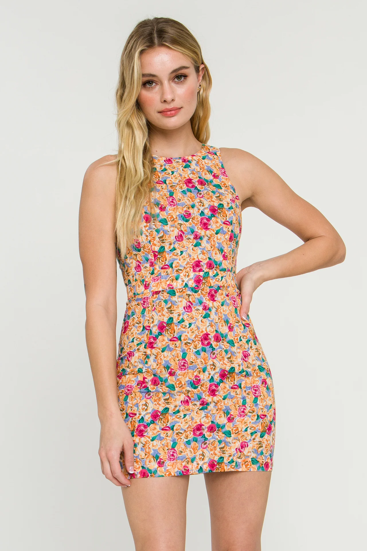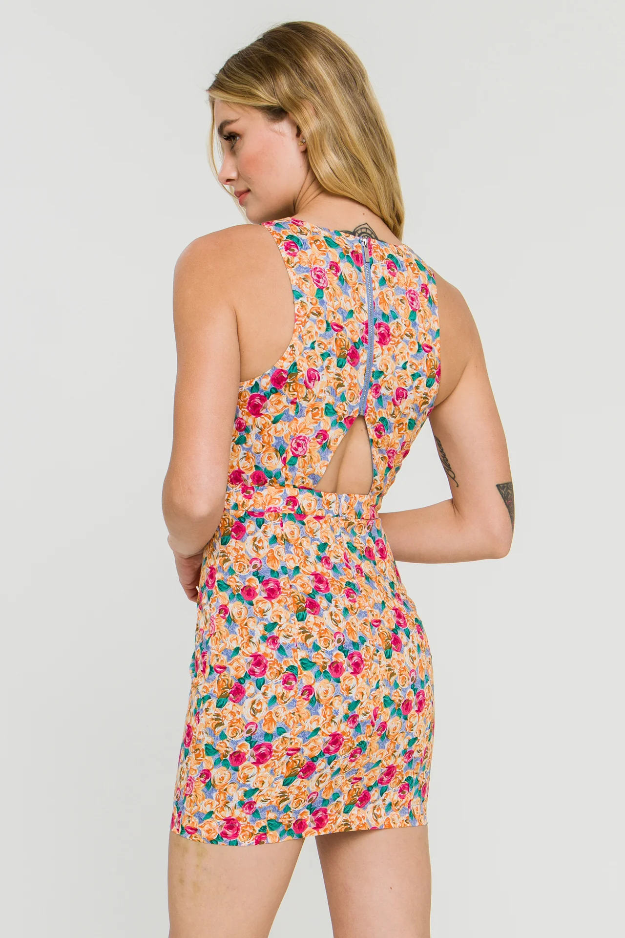 Floral Fitted Mini Dress with Back Cutout