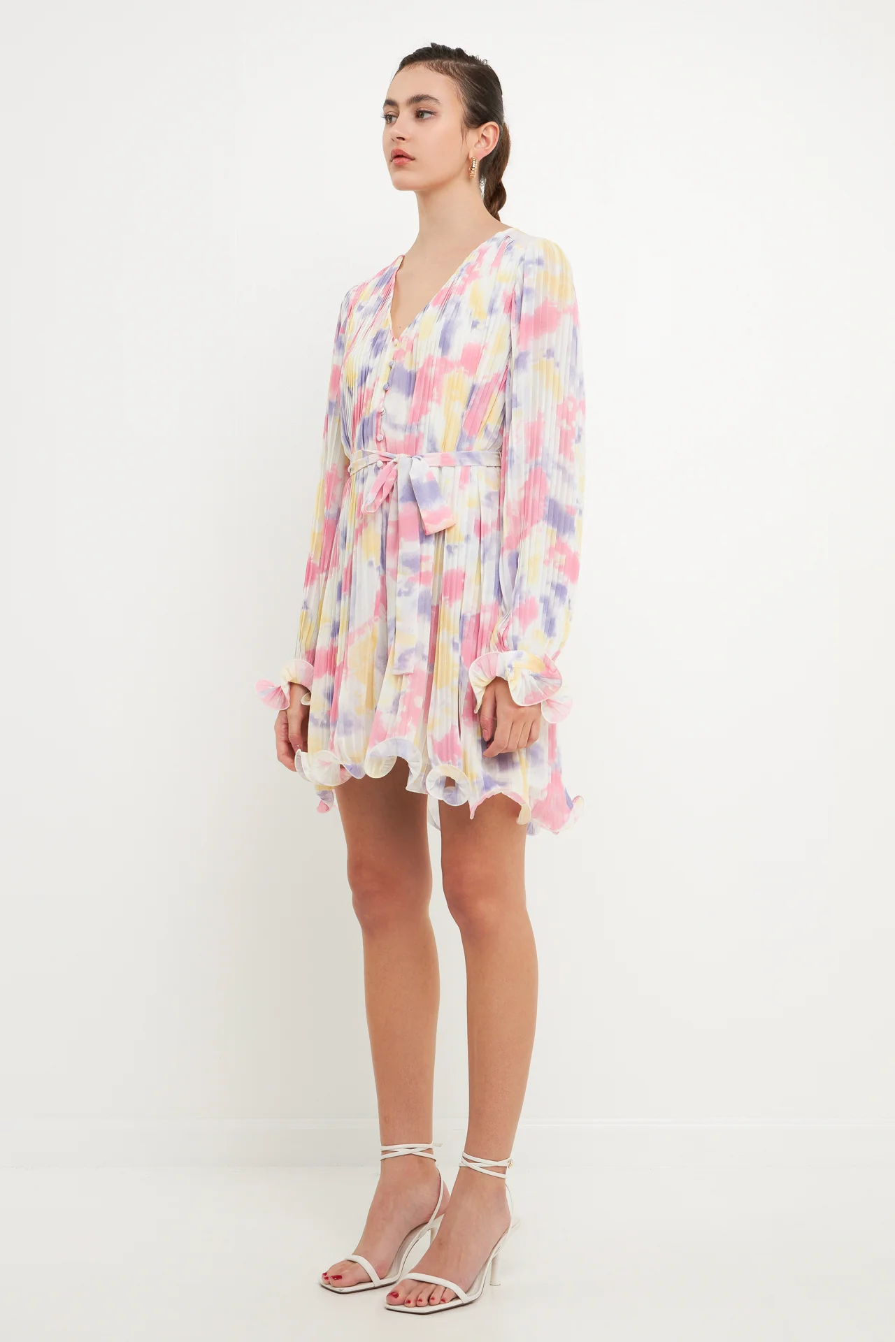 Tie-dye Chiffon Pleated Mini Dress