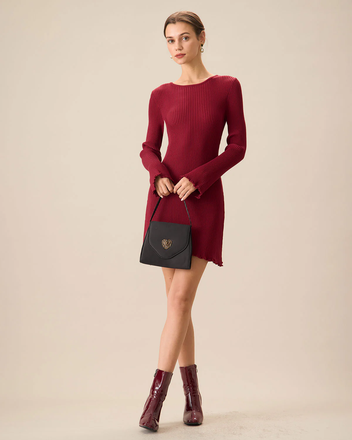 Women's Red Bell Sleeve Bodycon Sweater Dress
