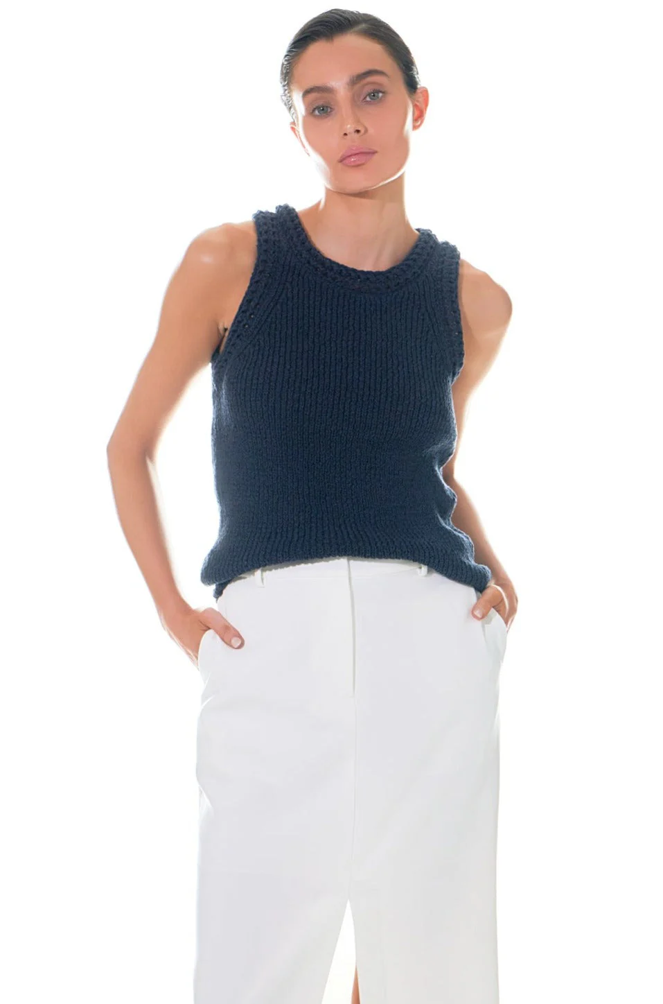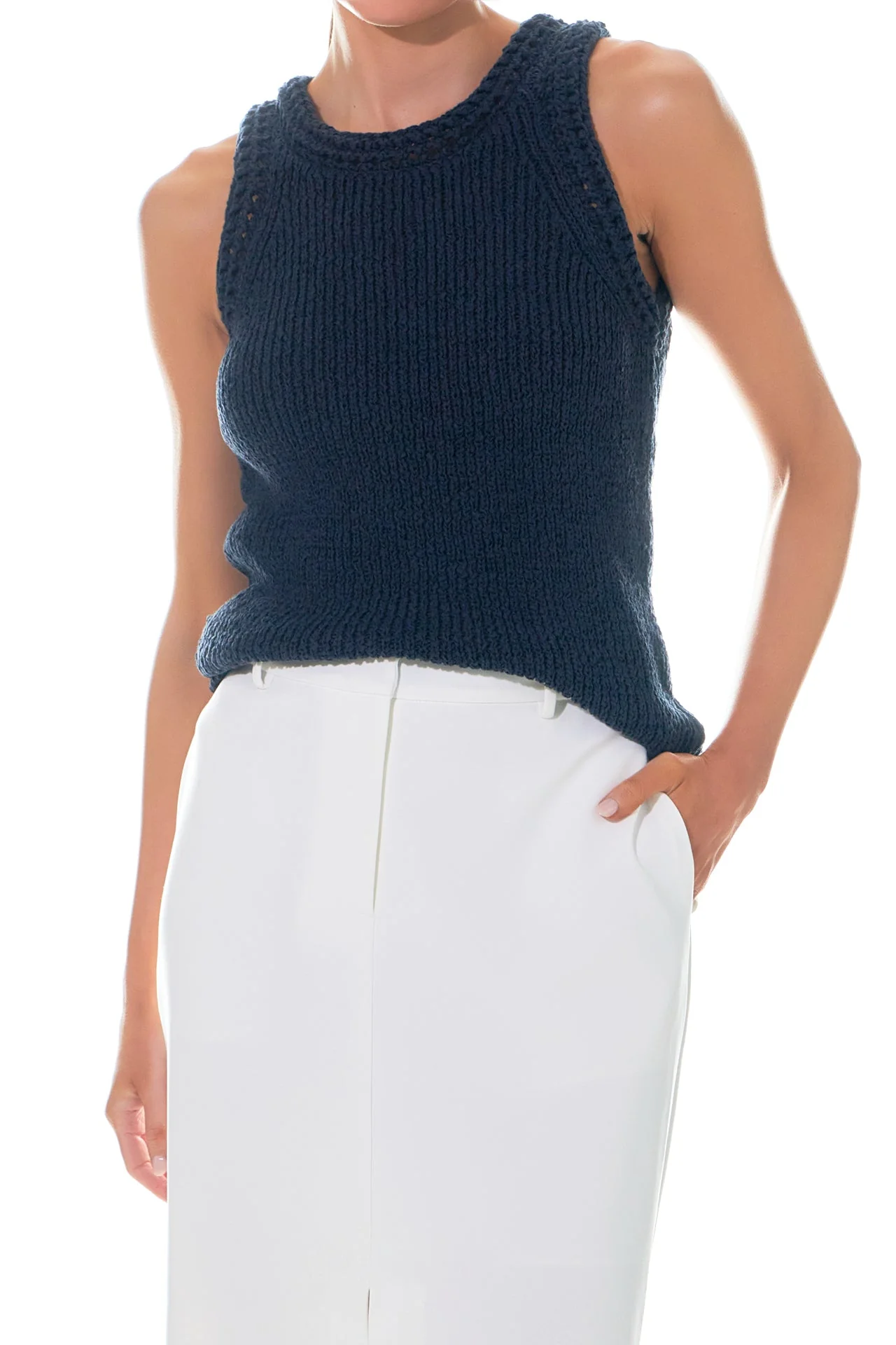 Round Neck Sleeveless Knit Top