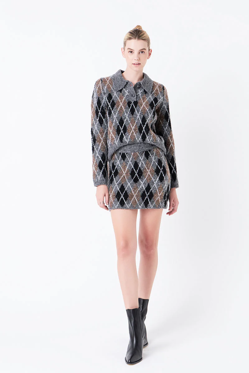 Argyle Knit Mini Skirt