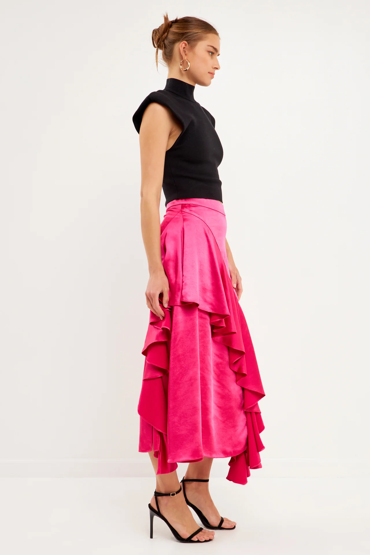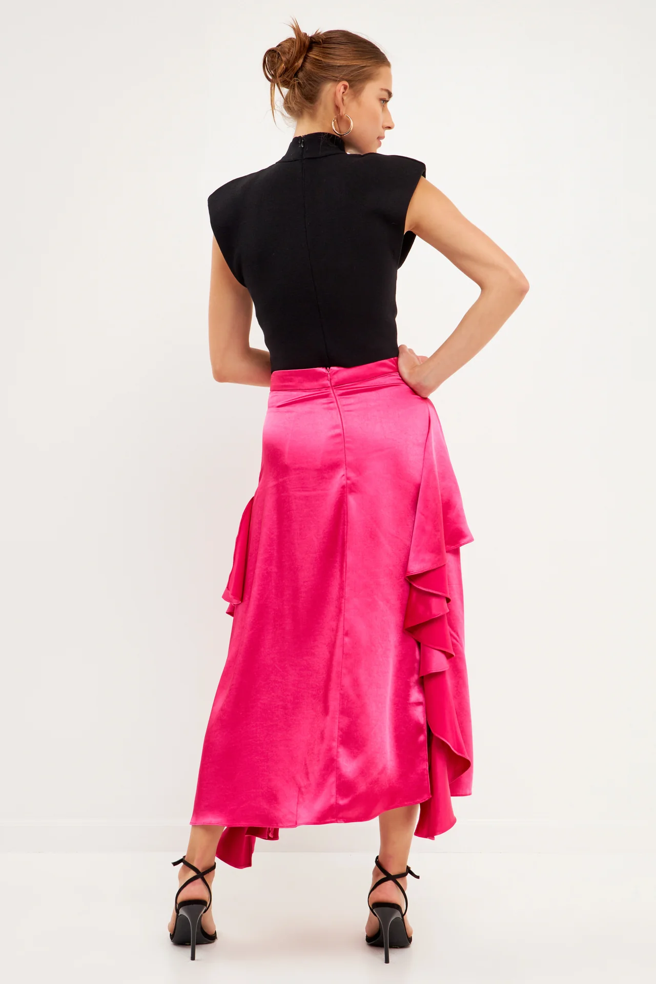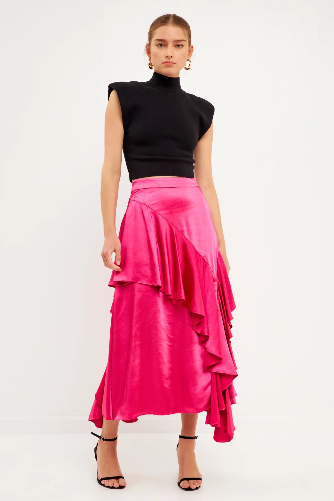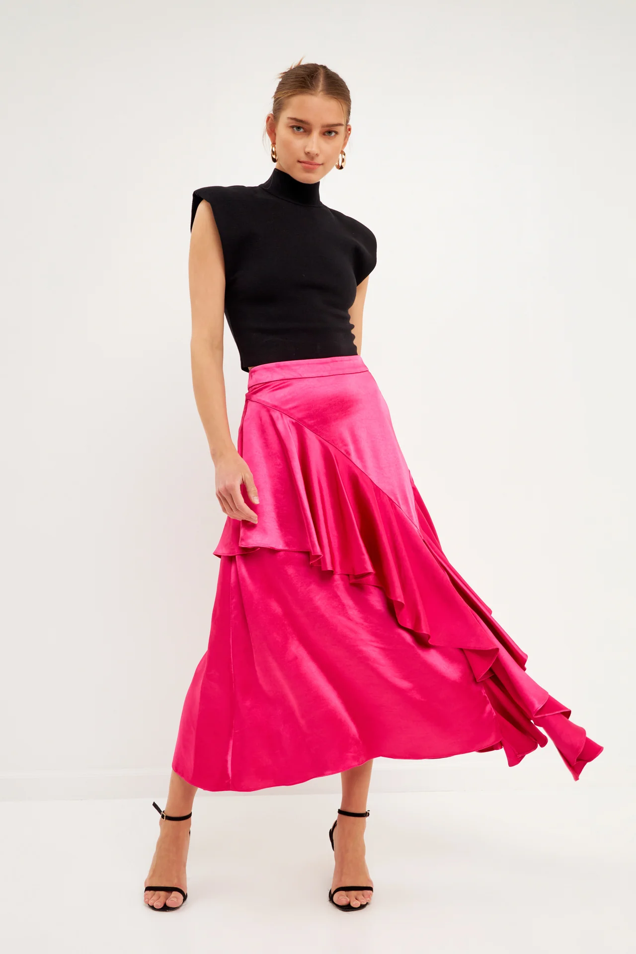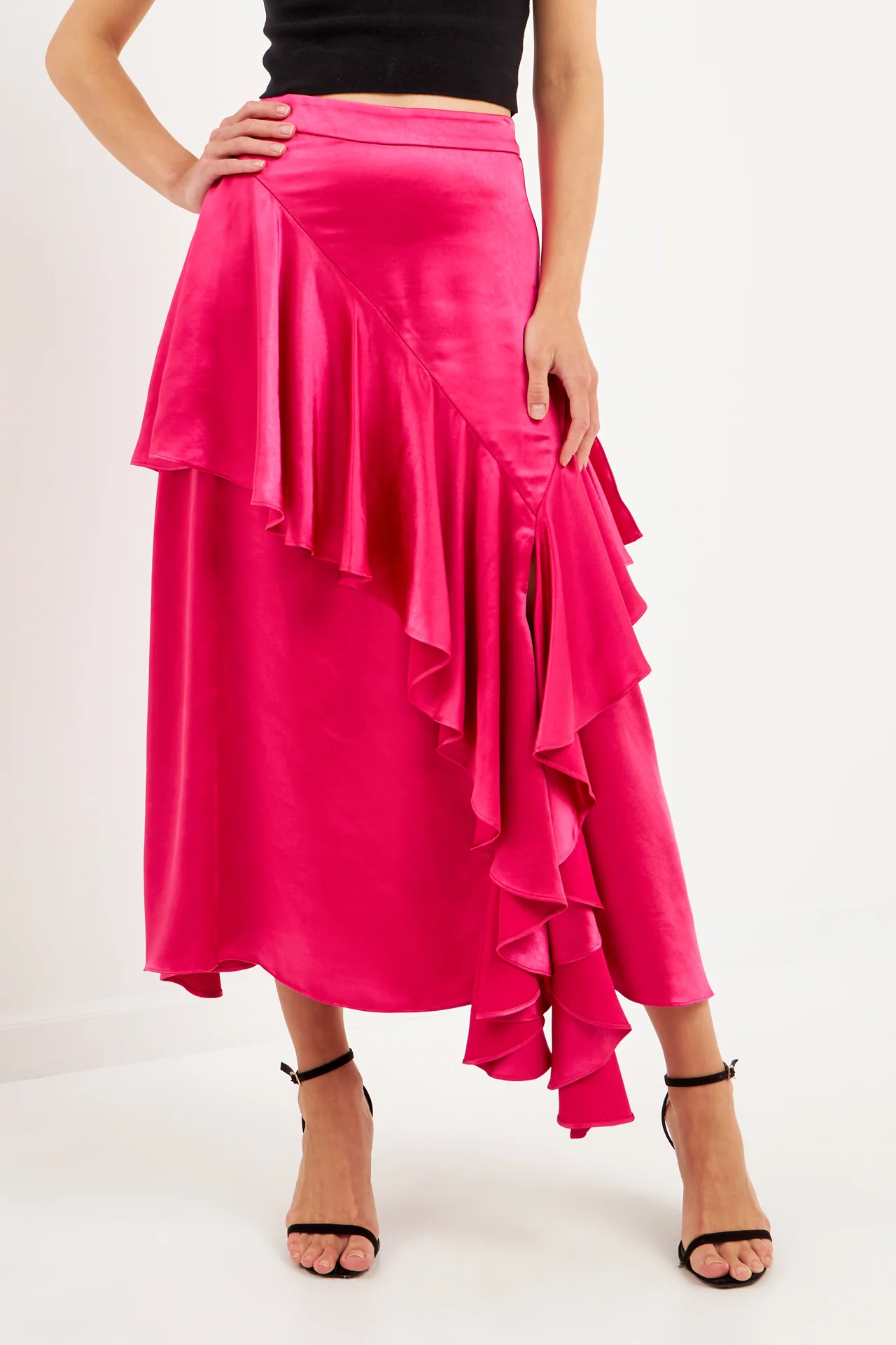 Satin Waterfall Midi Skirt
