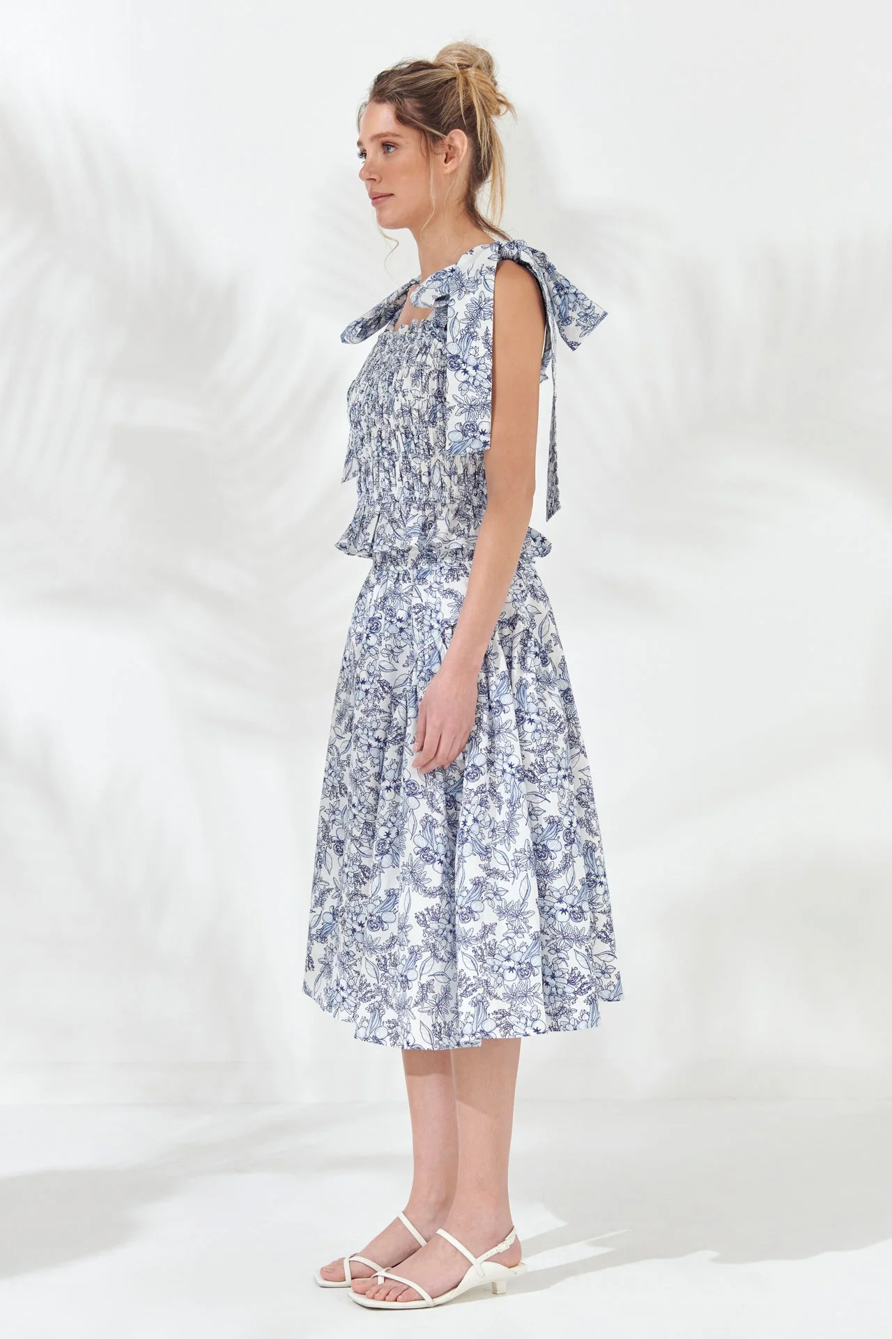 Print Linen Midi Skirt